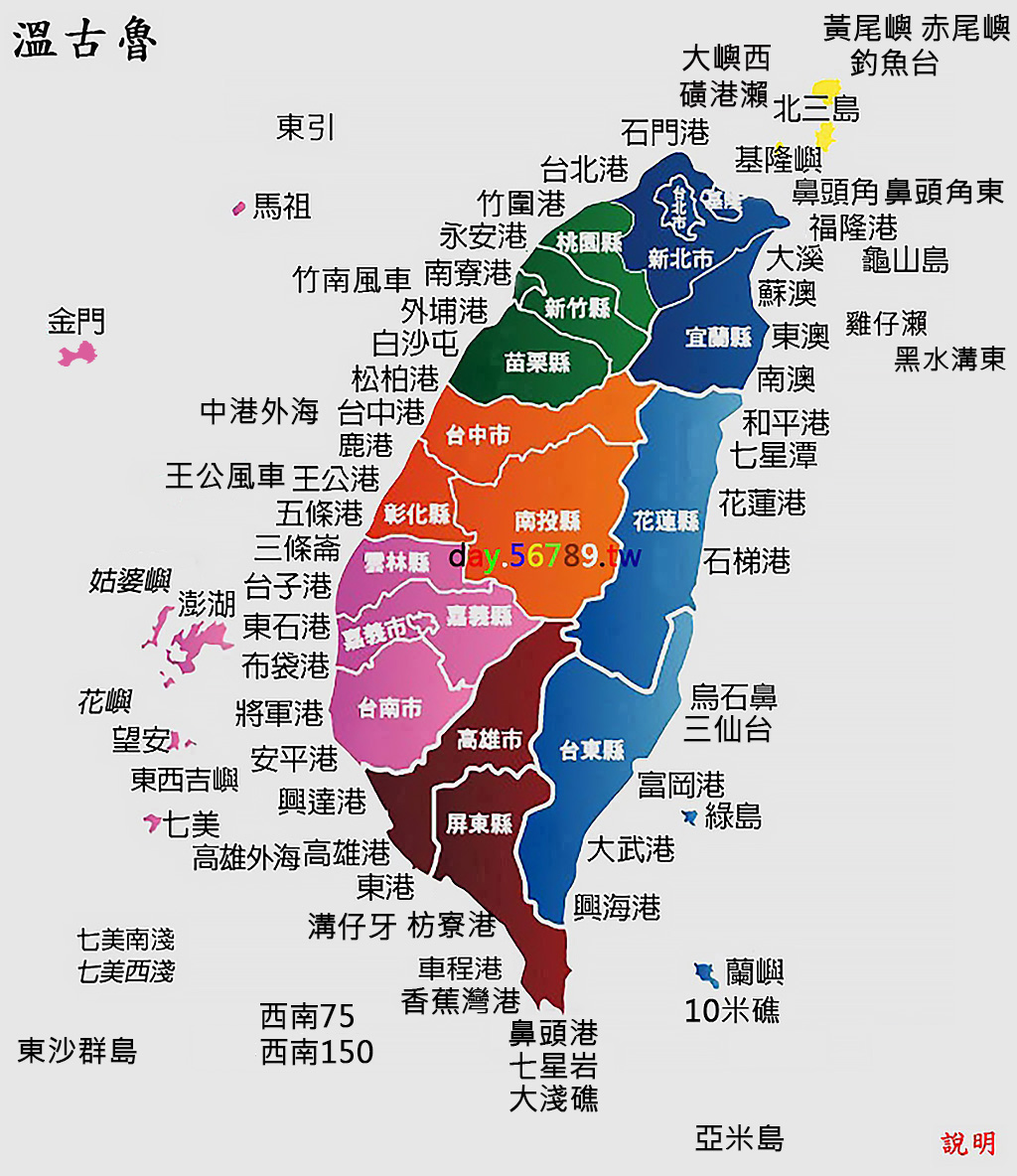 新竹南寮漁港 外埔外海 白沙屯 台北港 石門漁港 北三島 基隆嶼 福隆漁港 鼻頭角 龜山島東 和平港南堤 松柏漁港 台中港 王功漁港 五條港蚵棚 三條崙蚵棚 台子港 東石 布袋蚵棚 安平港 興達港 高雄港 車城海口港 墾丁鼻頭港 啞口港 大武漁港 台東富岡 花蓮石梯港 花蓮港 彰濱北堤出水口 永安漁港 澎湖 望安潭門港 七美 東港 蘭嶼東清灣 綠島南寮漁港 南竿福澳港 南澳 東澳 蘇澳 大溪 烏石鼻漁港 花蓮七星潭 七美南淺 七美西淺 東西吉嶼 復國墩 東引 將軍港 永安 花嶼 姑婆嶼 礦港瀨 雞仔瀨 雅米島 香蕉灣港 南投市 高雄外海 大淺礁 竹南風車 10米礁 高雄西南150海里 高雄西南75海里 七星岩 釣魚台 三仙台 說明 赤尾嶼 黃尾嶼 東沙群島 枋寮漁港 溝仔牙 黑水溝東 王公風車 中港外海 鼻頭角東 大嶼西